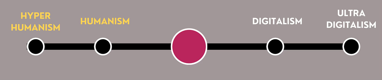 Ultra-digitalism must be balanced with hyper-humanism. Wherever you are on the spectrum between digitalism and ultra digitalism, you have to find the equivalent point between humanism and hyper humanism to survive, succeed and thrive.